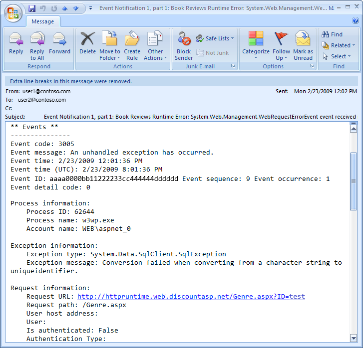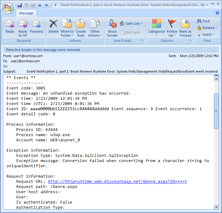 图 2 显示了访问Genre.aspx?ID=foo时类生成SimpleMailWebEventProvider的电子邮件。