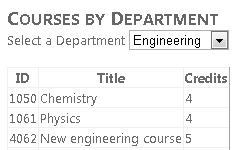 运行 Courses.aspx 页,并选择同一部门以查看新课程。