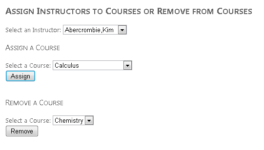 最后,标记还会创建一组控件,用于从所选讲师中删除课程。
