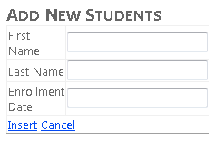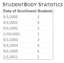 EntityTypeFilter="Student"StudentsEntityDataSource控件。 标记现在将类似于以下示例:<asp:EntityDataSource ID="StudentsEntityDataSource" runat="server" ContextTypeName="ContosoUniversity.DAL.SchoolEntities" EnableFlattening="False" EntitySetName="People" EntityTypeFilter="Student" EnableInsert="True" </asp:EntityDataSource>在 About.aspx 中,将 添加到