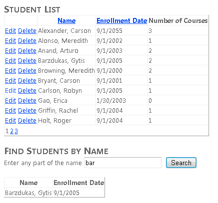 Contoso University 示例 Web 应用程序演示如何使用 Entity Framework 4.0 和 Visual Studio 2010 创建 ASP.NET Web 窗体应用程序。 有关教程系列的信息,请参阅 系列中的第一个教程