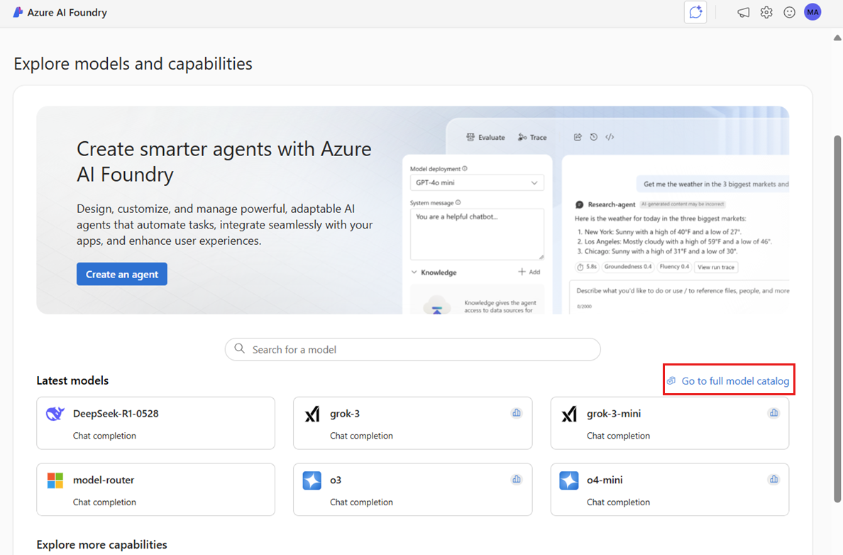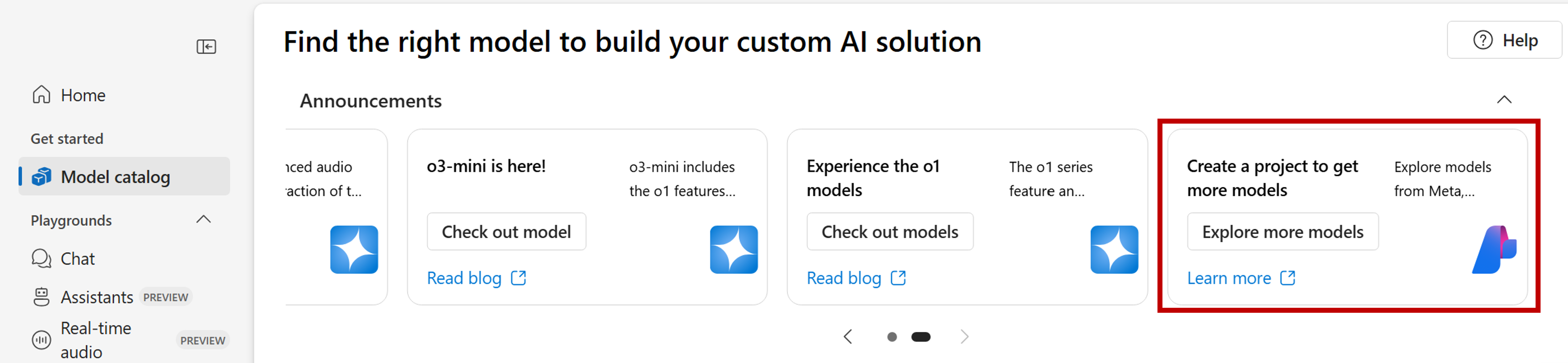 由于可以在 Azure AI Foundry 门户中 自定义左窗格 ,因此你可能会看到与这些步骤中显示的项不同。 如果未看到要查找的内容,请选择 ... 左窗格底部的更多内容。