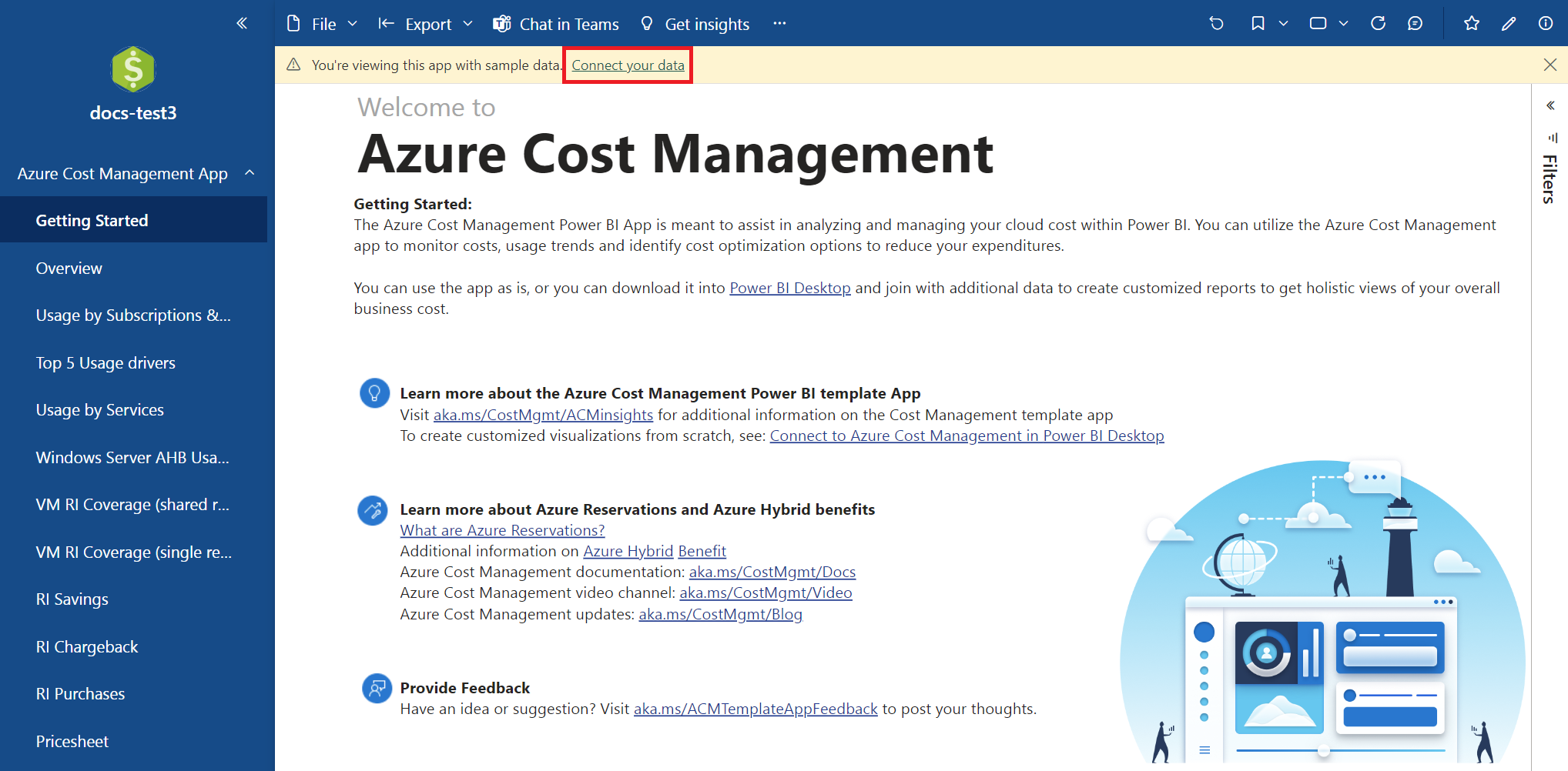 该应用在可自定义方面存在限制。 如果要修改和扩展默认的筛选器、视图和可视化效果来根据需要进行自定义,请改用 Power BI Desktop 中的成本管理连接器。 借助成本管理连接器,可联接来自其他源的其他数据以创建自定义报表,从而全面了解整体业务成本。 该连接器还支持 Microsoft 客户协议。