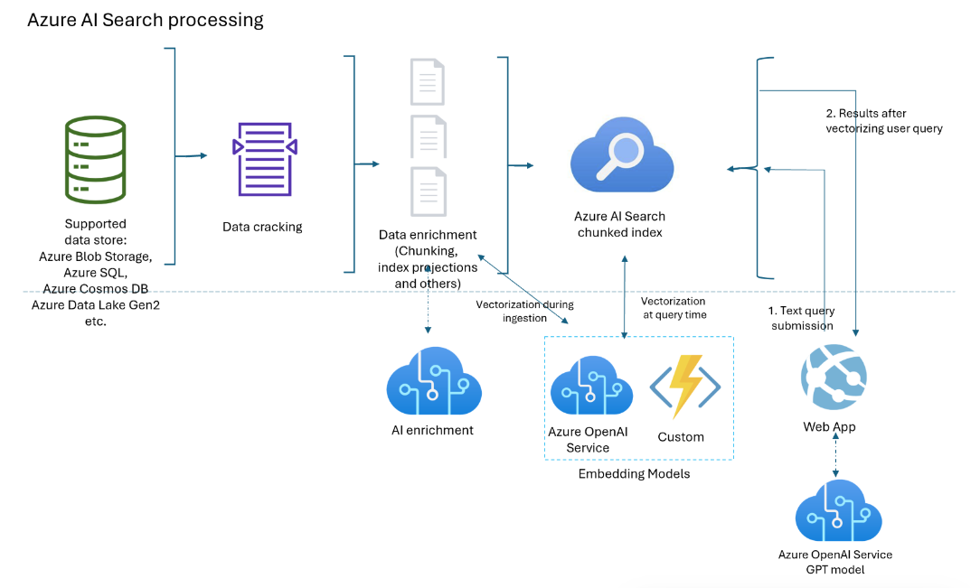 集成矢量化是 Azure AI 搜索中索引和查询管道的扩展。 它添加了以下功能: