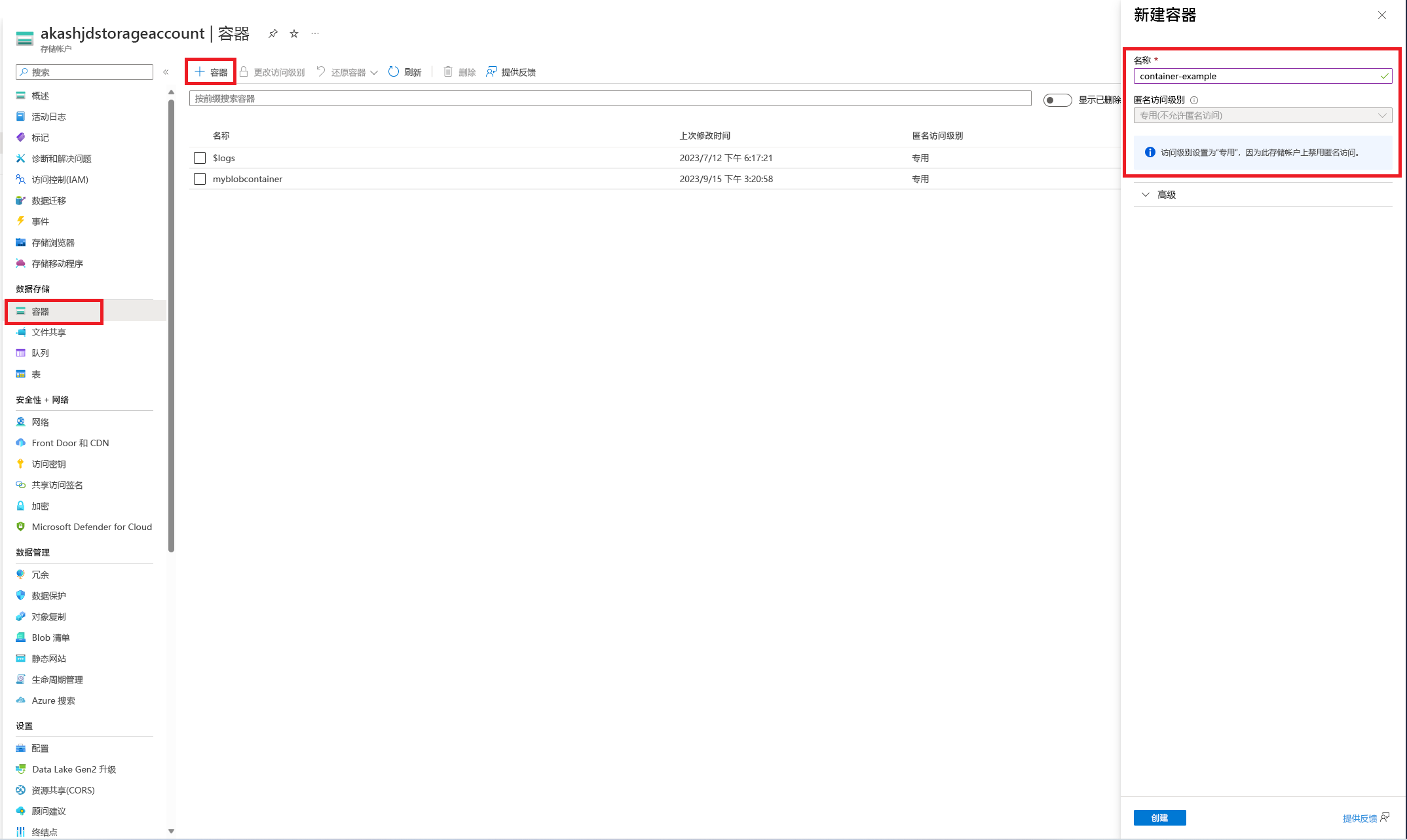 设置容器的 匿名访问级别 。 建议的级别为“专用”(无匿名访问)。 有关防止匿名访问 Blob 数据的信息,请参阅 概述:修正 Blob 数据的匿名读取访问权限。