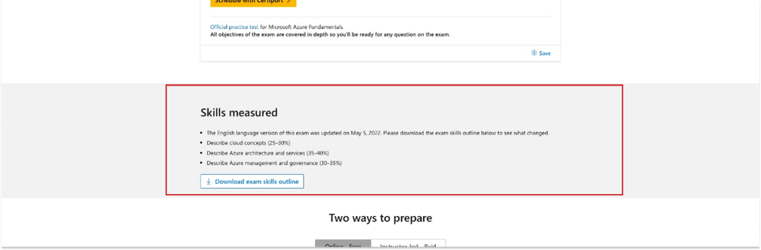 MeasureUp 提供的练习测试:一些考试具有通过 MeasureUp 提供的模拟考试,以帮助你备考。 如果可用,则将在认证详细信息页上提供链接。