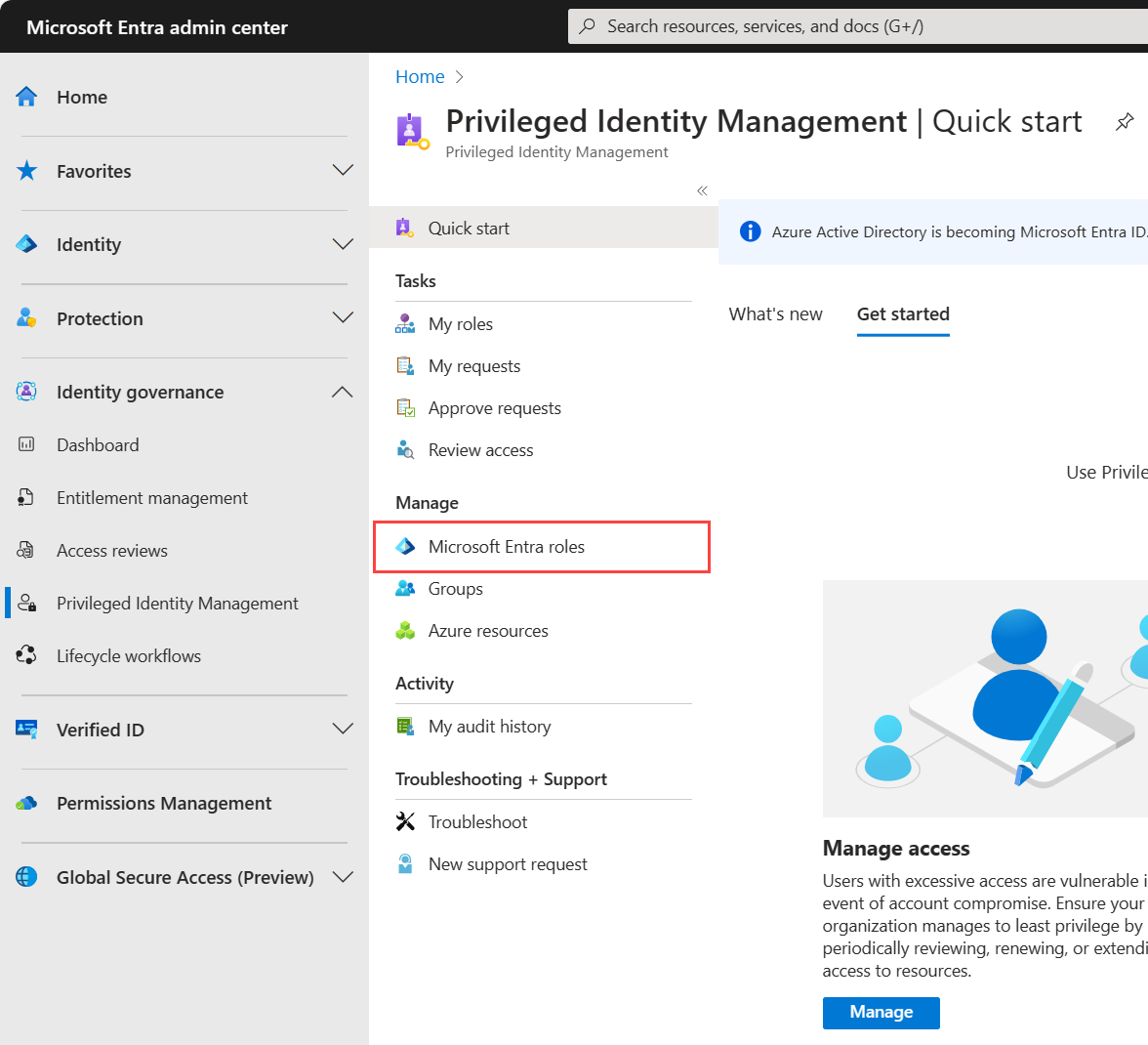 使用 Privileged Identity Management 需要许可证。 有关许可的详细信息,请参阅 Microsoft Entra ID 治理许可基础知识。
