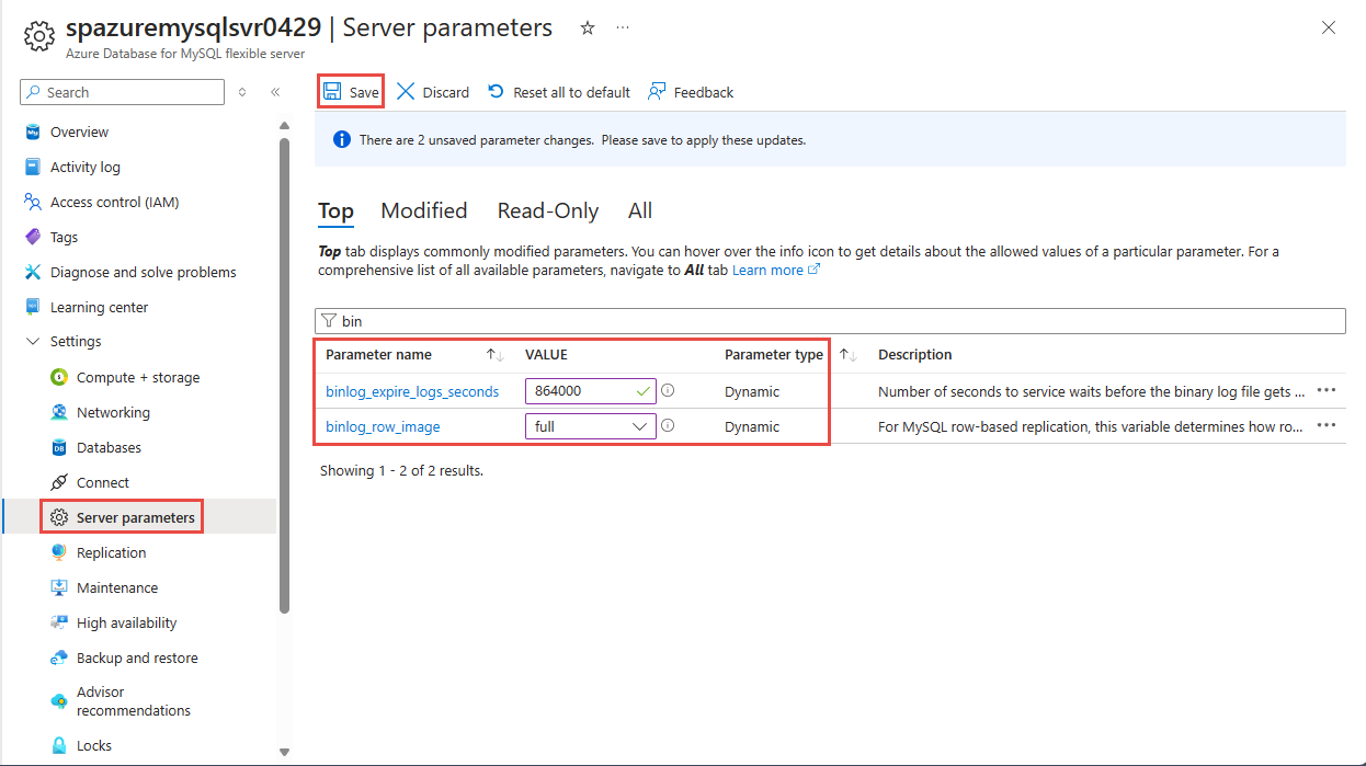 必须为 MySQL 复制启用二进制日志记录。 二进制日志将记录复制工具的事务更新,以传播更改。 例如,Azure Database for MySQL。