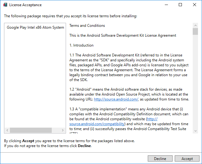 必须安装 Android SDK(请参阅设置用于 Xamarin.Android 的 Android SDK)。 请务必在默认位置安装 Android SDK(如果尚未安装):C:\Program Files (x86)\Android\android-sdk。