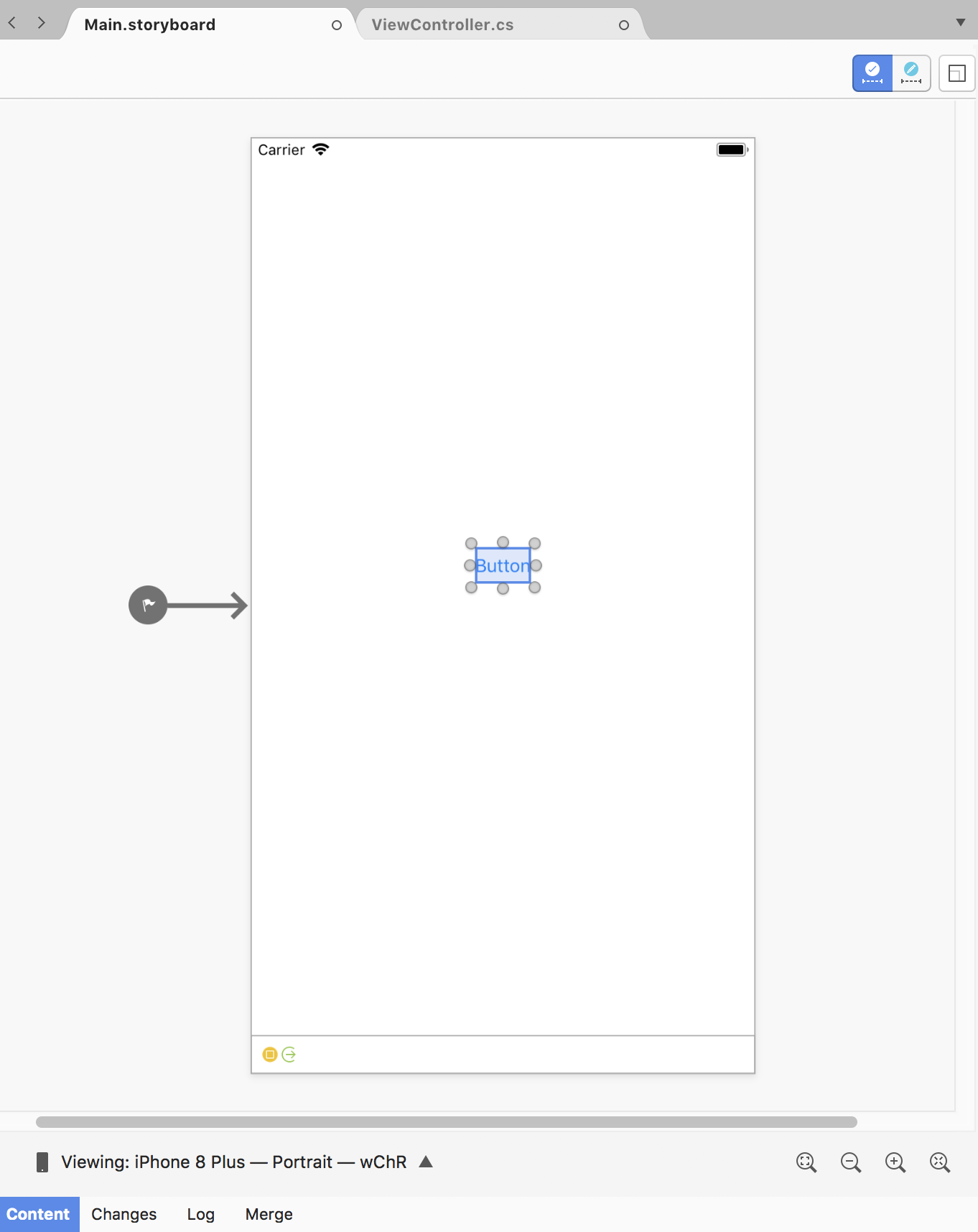 在 Xcode Interface Builder 中进行编辑后,保存文件并返回到 Visual Studio for Mac。 这些更改将同步到 Xamarin.iOS 项目。