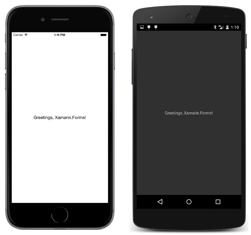GreetingsPage 构造函数实例化一个 Label 视图,该视图是显示文本的 Xamarin.Forms 视图。 Text 属性设置为 Label 显示的文本。 该程序将 Label 设置为 ContentPage 的 Content属性。 然后,App 类的构造函数实例化 GreetingsPage 并将其设置为 MainPage 属性。