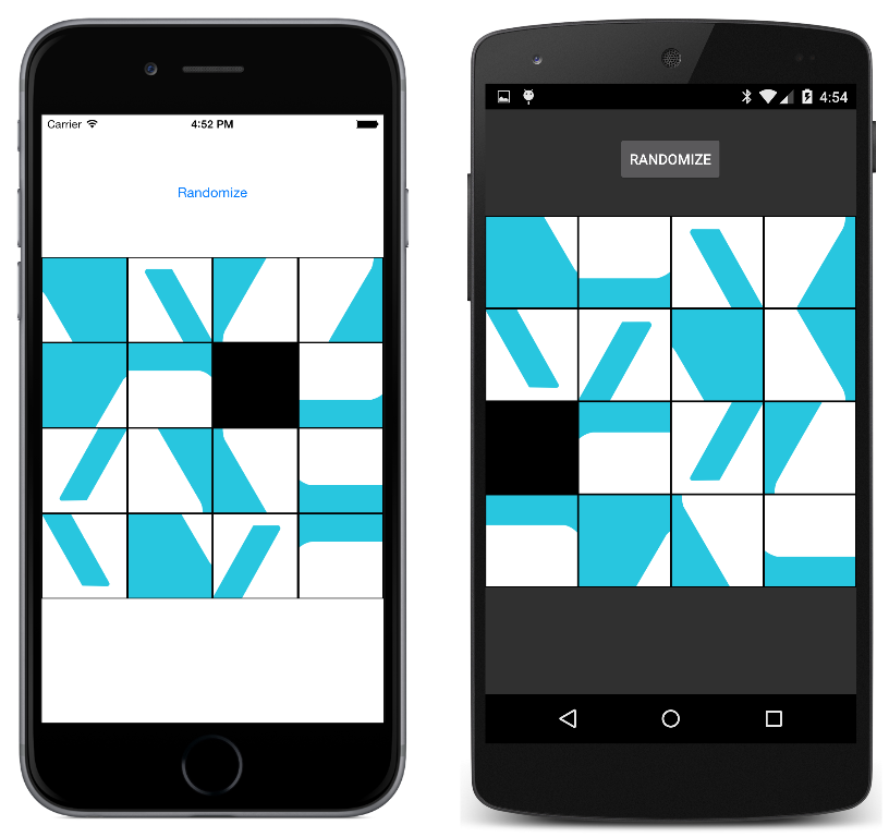 XamagonXuzzle 示例使用 LayoutTo 在经典的 15-16 拼图的实现中移动磁贴,该拼图显示杂乱的图像而不是编号磁贴: