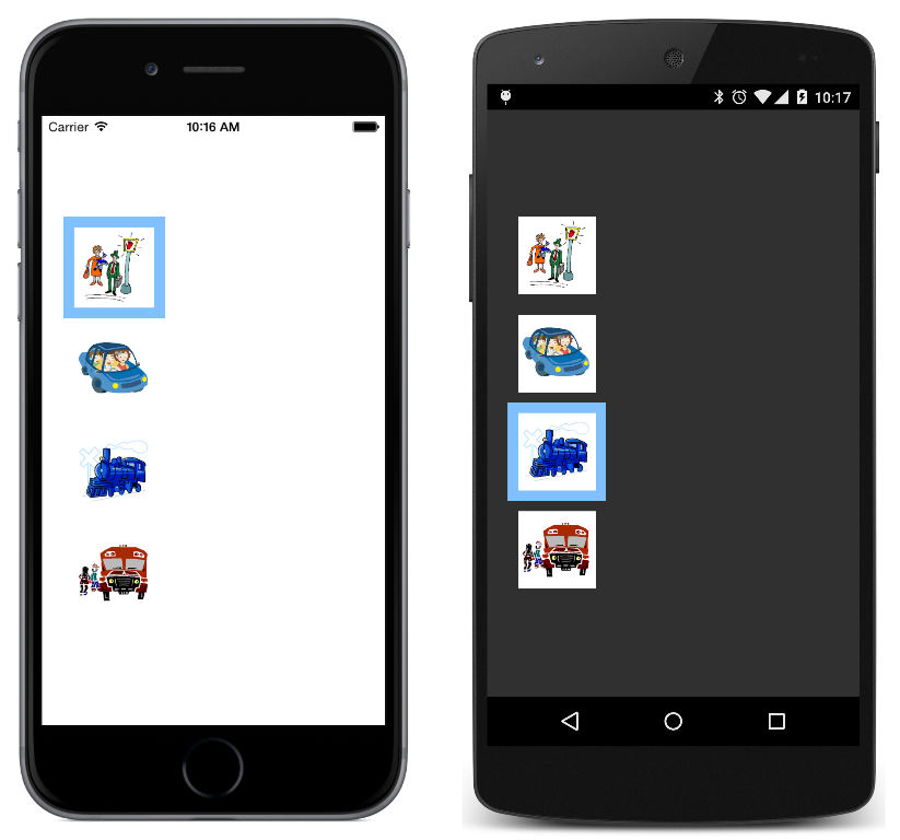 Xamarin.FormsBook.Toolkit 库中的 ToggleBase 类派生自 ContentView,定义了 IsToggled 属性,并为切换逻辑合并了 ToggleBehavior。 这样,就可以更轻松地在 XAML 中定义切换按钮,如 TraditionalCheckBox 示例所示。
