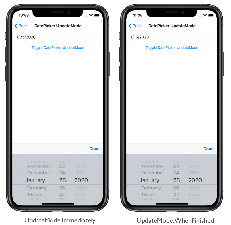 datePicker.On<iOS>().SetUpdateMode(UpdateMode.Immediately);