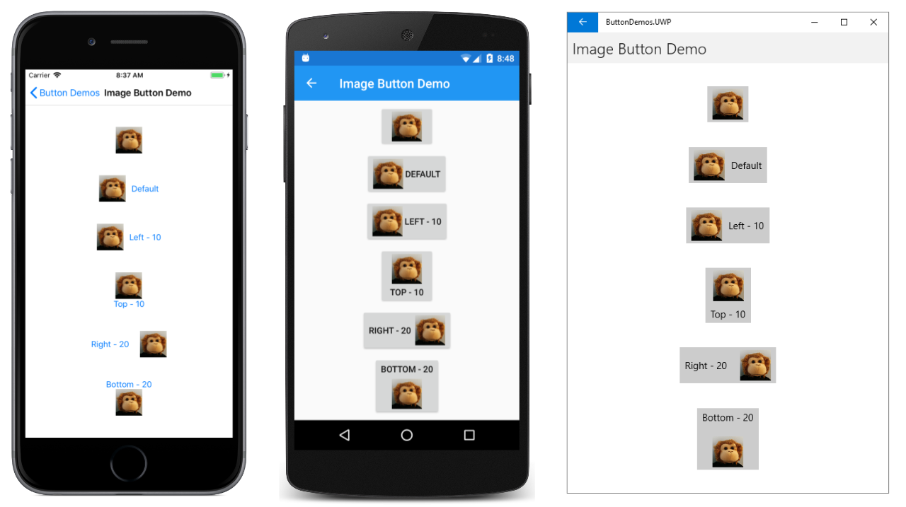 你可以使用 Button 的 ContentLayout 属性指定 Text 和 ImageSource 属性在 Button 上的排列方式。 此属性的类型为 ButtonContentLayout,它是 Button 中嵌入的类。 构造函数有两个参数:
